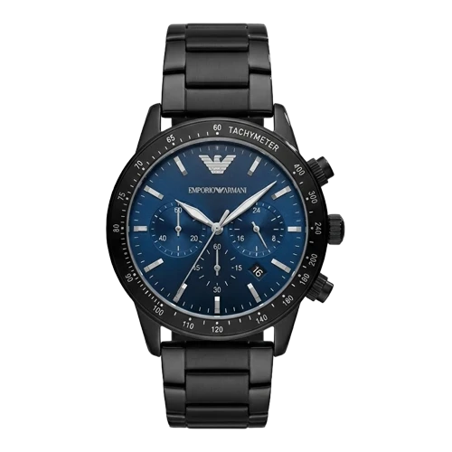 إمبوريو أرماني ساعة رجالية – أسود / كحلي / سوار معدني (كرونوغراف)