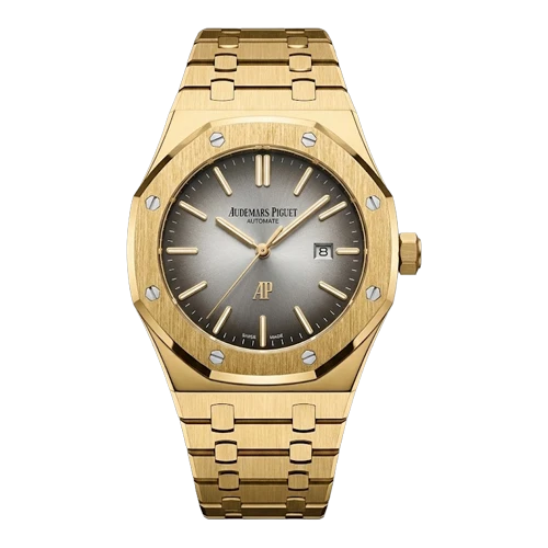 أوديمار بيغه ساعة رجالية – ذهبي / رمادي / سوار معدني (نافذة تاريخ)